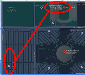 - across the street from State Farm Center off the 1st Street side.