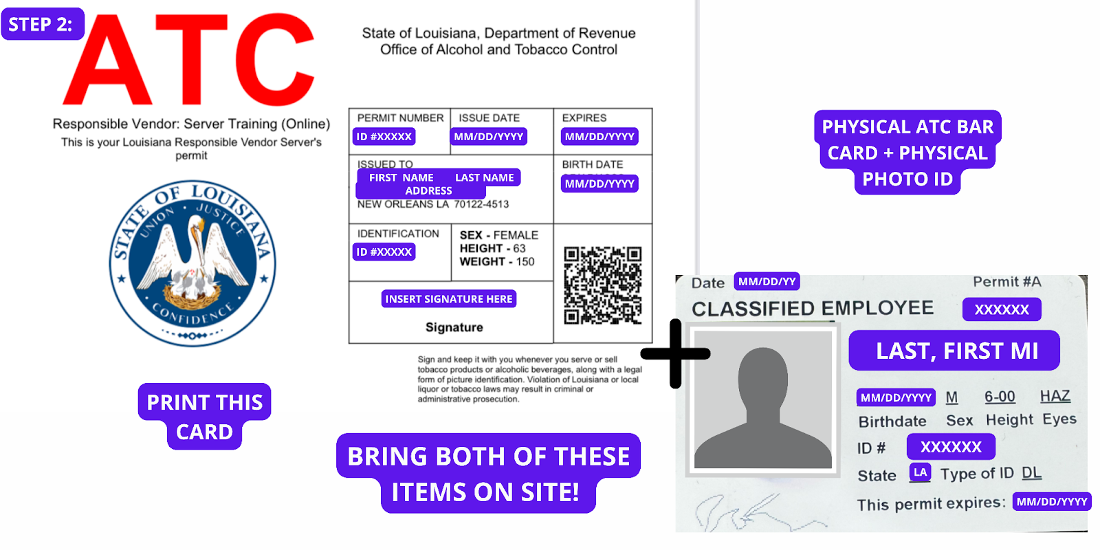 - YOU MUST have an ATC Responsible Vendor Server Training permit & PHOTO ID coming on-site