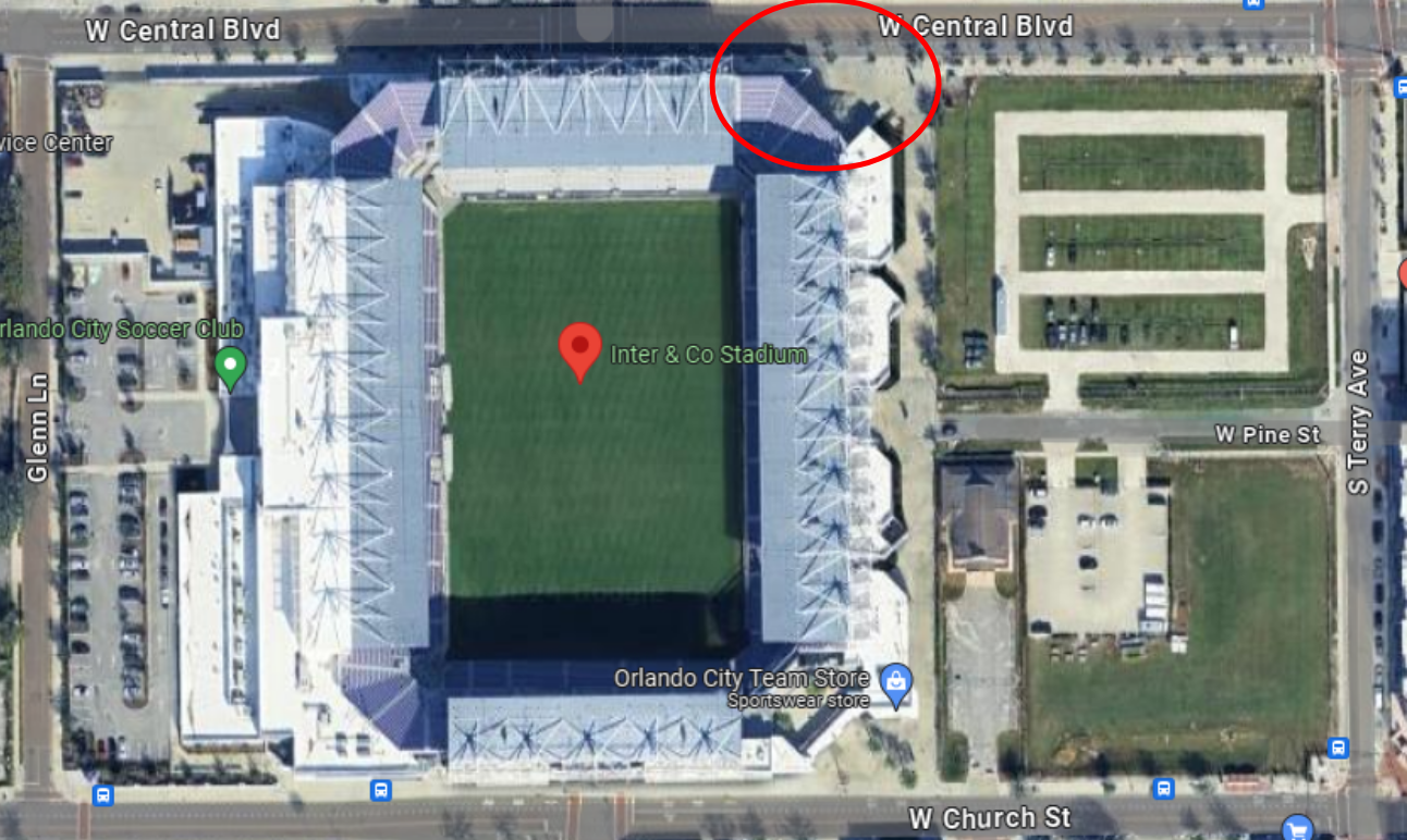 - Follow the straight path from the parking lot to Gate C along Central Blvd.