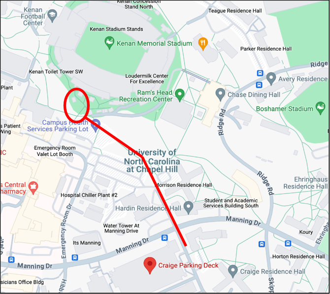 - Walk from Craige Parking Deck to Gate 6.