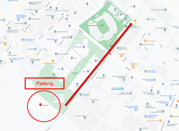 - Follow the straight path from the parking lot to Lot A on Key Road