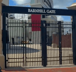 - Cross the street, turn right at Barnhill Gate, and proceed to the EAST GATES