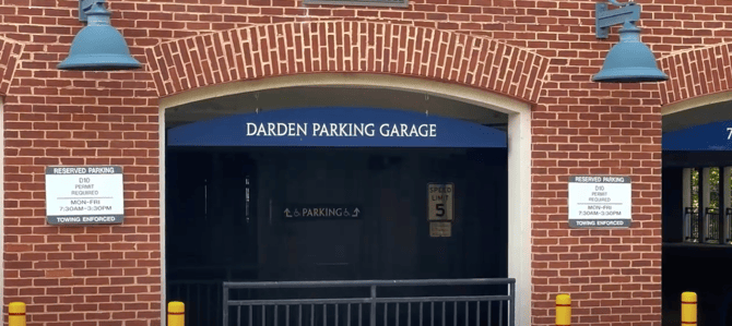 - Parking is located at Darden Business School Garage (Darden School Parking Garage, Charlottesville, VA 22903)
